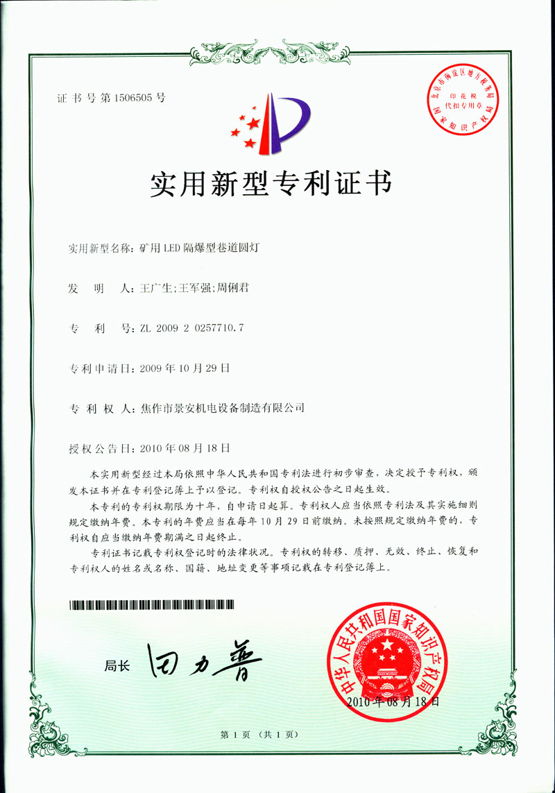 焦作景安公司始終堅持“以科技為先導,以市場為導向”的發(fā)展戰(zhàn)略,不斷進行新產(chǎn)品的研制和開發(fā),在國家“六五”到“九五”期間,承擔和參與了國家多項科技攻關項目。并被中國電器工業(yè)協(xié)會評定為“質量可信產(chǎn)品”。特別是在礦用防爆燈領域,礦用隔爆型半導體(LED)照明燈具,2008年列入國家火炬計劃,獲2009年河南省工業(yè)和信息化廳的科技成果二等獎,并擁有多項國家專利。 |